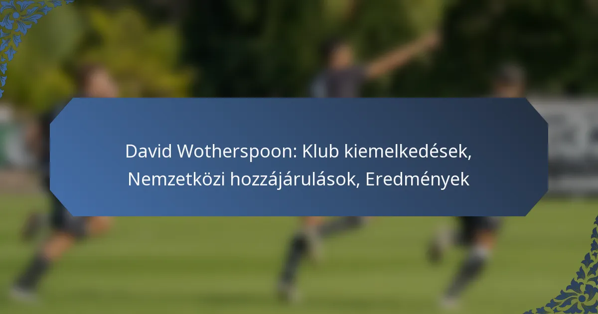David Wotherspoon jelentős hozzájárulásokat tett a klub- és a nemzetközi labdarúgásban, bemutatva készségeit és eltökéltségét karrierje során. Eredményei közé tartoznak az egyéni díjak, klubcímek és figyelemre méltó mérföldkövek, amelyek hangsúlyozzák fontosságát a kanadai labdarúgásban.