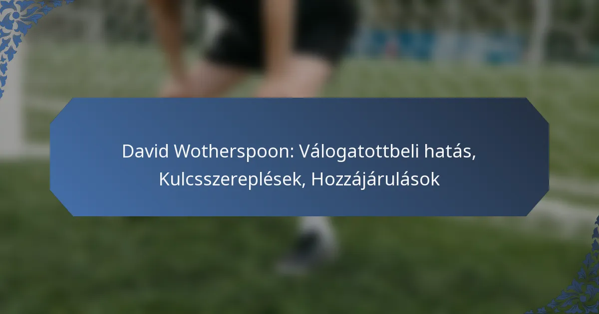 David Wotherspoon jelentős hozzájárulásokat tett a válogatott csapatnak taktikai sokoldalúságával, vezetői képességeivel és mérkőzéseket megváltoztató teljesítményeivel. Képessége, hogy különböző szerepekhez alkalmazkodjon a pályán, javította a csapat dinamikáját és hatékonyságát kulcsfontosságú mérkőzéseken.