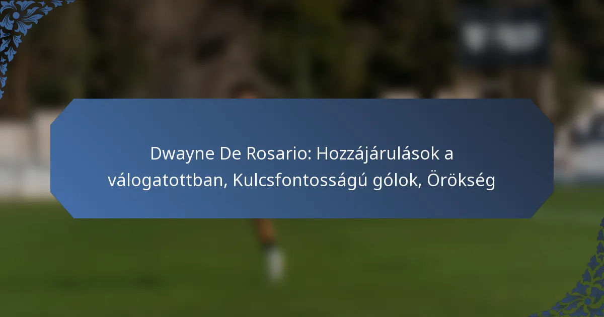 Dwayne De Rosario jelentős hatással volt a kanadai labdarúgó-válogatottra kivételes képességeivel, vezetői kvalitásaival és elkötelezettségével. Hozzájárulásai közé tartoznak a kulcsfontosságú teljesítmények a nagy tornákon, rekorddöntő eredmények és egy tartós örökség, amely inspirálja a jövő generációit.