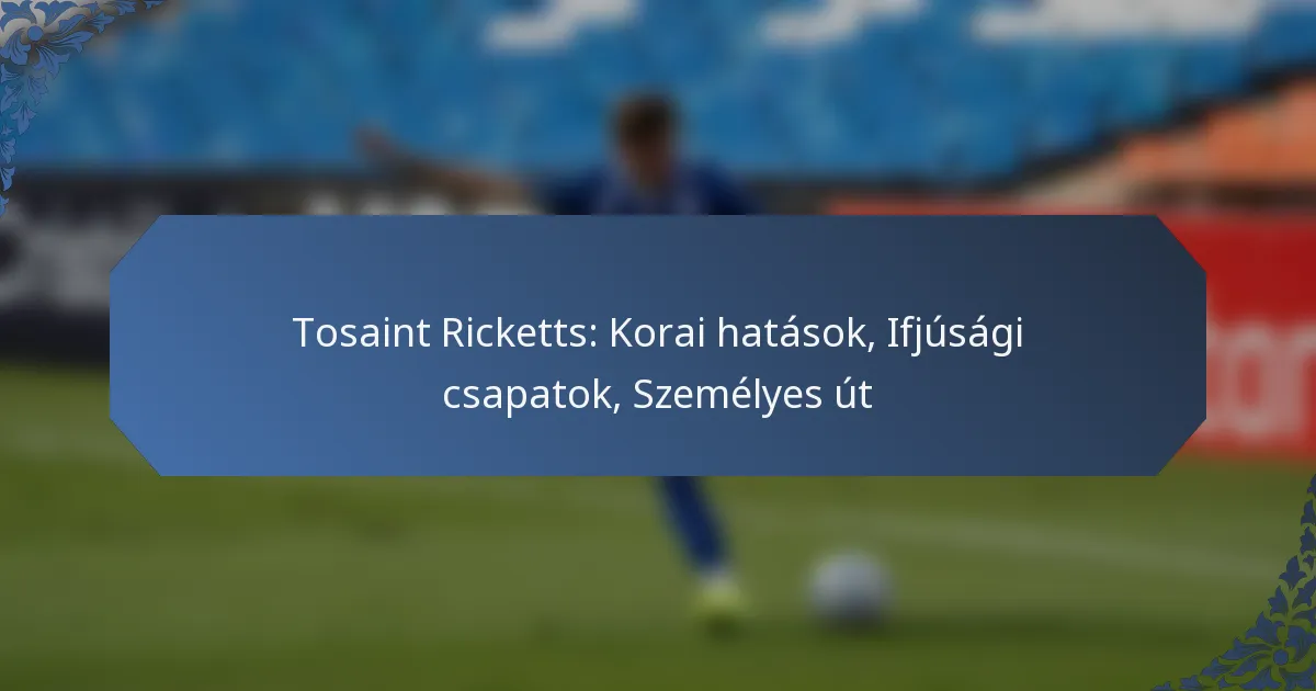 Tosaint Ricketts focis karrierje mélyen gyökerezik családja sport iránti szeretetében és kulturális hátterében, amely támogató környezetet biztosított a fejlődéséhez. Korai részvétele különböző ifjúsági csapatokban kulcsszerepet játszott készségei és a játék megértésének csiszolásában, végül pedig megnyitotta az utat a profi karrierje előtt. Ricketts személyes története a kitartásról és a elszántságról szól, tükrözve elkötelezettségét a kihívások leküzdése iránt, akár a pályán, akár azon kívül.
